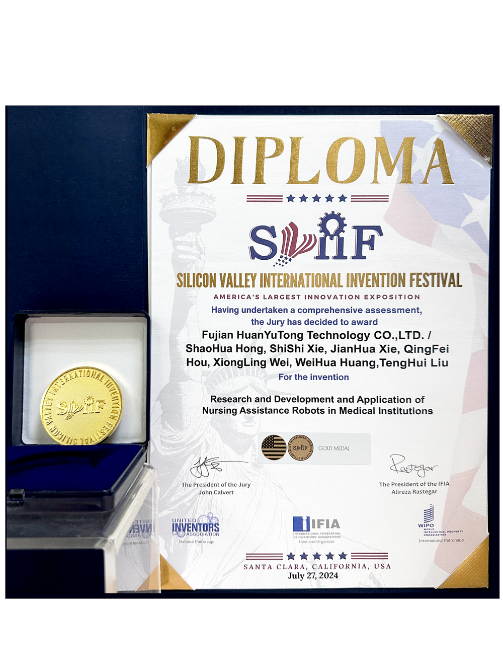 近期,2024美国硅谷国际发明展(SVIIF)于7月25至28日在加利福尼亚圣克拉拉举办。此展会是世界上最具影响力的国际发明展之一,在全球创新研发领域享有盛誉。本届展会共展出上千项全球顶尖的科研成果,经过多轮专业评审与选拔,凯发K8参展的医疗组织护理辅助机器人的研发及应用脱颖而出,斩获金奖。